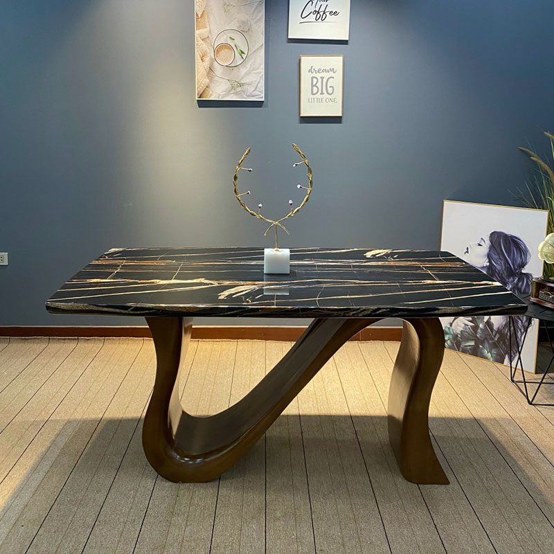 - Bàn ăn thiết kế chân khung cách điệu với các đường cong tinh tế hình chữ S, chất liệu gỗ sồi tự nhiên màu sắc HOT nhất hiện nay. Mặt đá vân đẹp hiện đại. Quý khách hàng cũng có thể sử dụng mặt đá tự nhiên thay thế. Dòng bàn có kích thước là 1m2, 1m4, 1m6, 1m8.