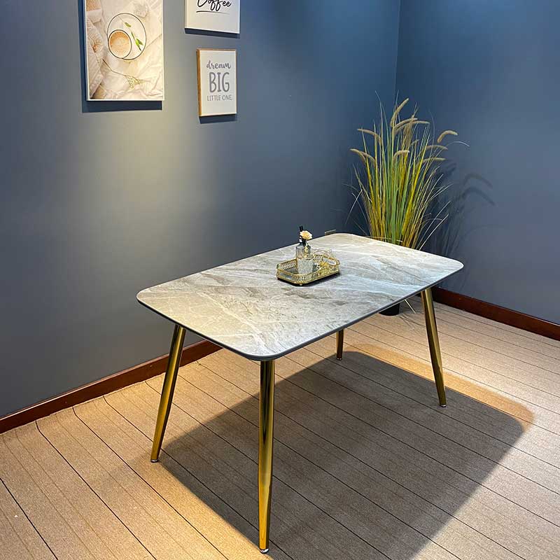 Bàn ăn mặt đá chân côn mạ vàng PVD KT80cmx140cm BA673 là một mẫu bàn ăn thiết kế đơn giản nhưng không kém phần tinh tế và sang trọng với phần chân được thiết kế dạng chân côn mạ vàng PDV cùng mặt đá Ceramic nhập khẩu cao cấp. Có khả năng chống thấm, độ bền cao.
