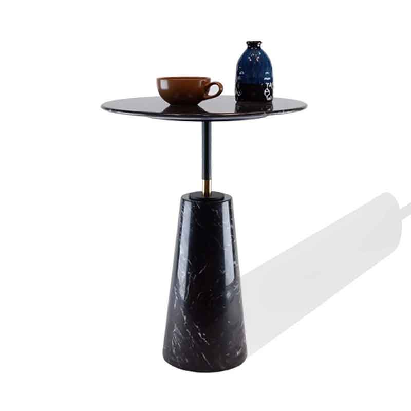 Chiếc bàn side table trụ đá là sự kết hợp hoàn hảo giữa tính nghệ thuật và công năng sử dụng. Bề mặt bàn được làm từ đá nguyên khối kết hợp với phần trụ INOX phủ lớp PVD màu vàng kết nối hoàn hảo với phần trụ đá nguyên khối màu đen vân trắng mang lại vẻ đẹp hiện đại và thời thượng. Màu sắc này không chỉ làm nổi bật không gian nội thất mà còn dễ dàng kết hợp với nhiều kiểu thiết kế khác nhau, từ nội thất hiện đại cho đến cổ điển.
