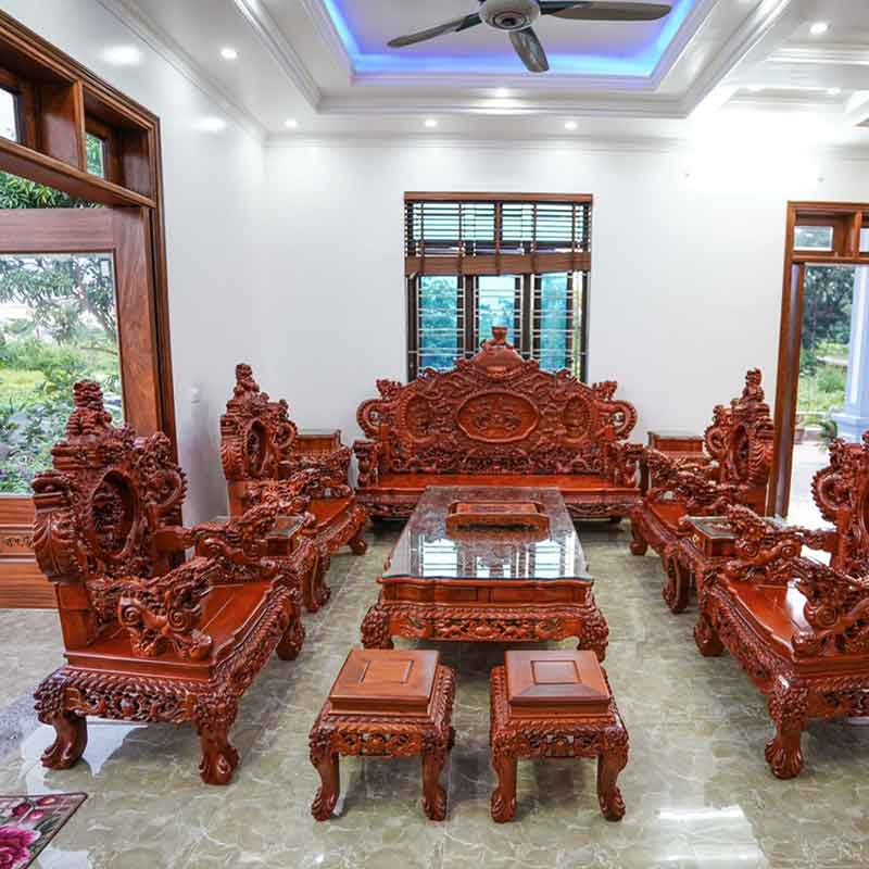 Mẫu Rồng bảo đỉnh VIP hương đỏ Lào tạo sự hùng vĩ cho bộ ghế . Tựa ghế Được Trạm rồng đỉnh mẫu nghê kích thước chỉ dành cho phòng khách 40m2 trở lên. Mẫu này đặc biệt cho 1 siêu phẩm cực VIP
