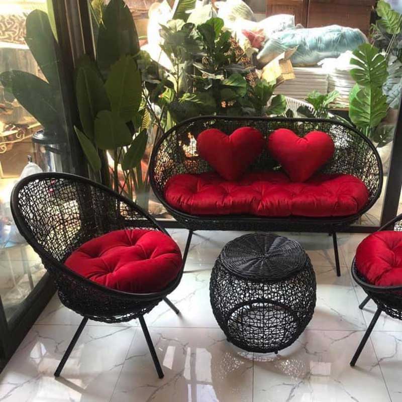 Bộ sofa mây nhựa cao cấp đan rối đen BM626 bao gồm 1 văng ghế dài 1m4, 2 ghế 70cm và 1 bàn tròn 50cm được thiết kế tinh tế, hiện đại, cộng với sự cần mẫn của những người thợ thủ công lành nghề đảm bảo bạn sẽ luôn có những bộ bàn ghế quán cafe, bộ sofa phòng khách đẹp, độc đáo.