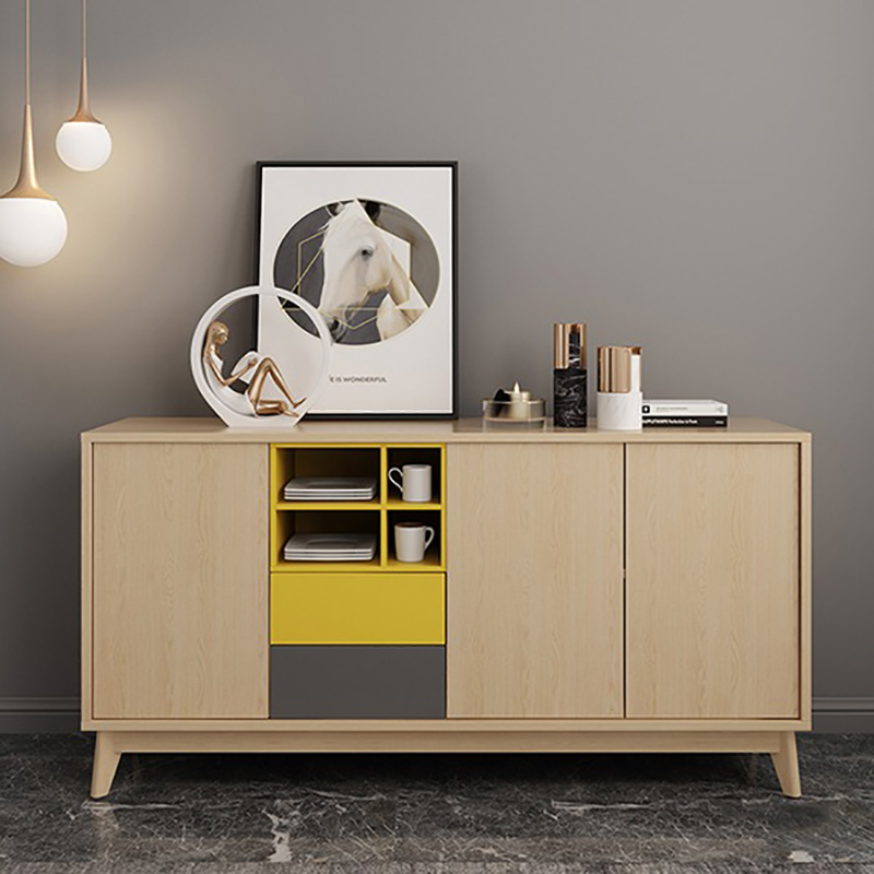 Sản phẩm tủ trang trí gia đình sử dụng màu vân gỗ làm màu chủ đạo kết hợp với màu vàng tạo điểm nhấn cho sản phẩm làm sáng bừng tổng thể không gian. Sự kết hợp hài hòa giữa đường nét cổ điển với kiểu dáng hiện đại tạo sự mới lạ cho không gian sống.